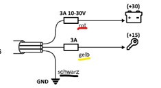Lassen Sie bitte zunächst die Mautbox an das Bordnetz Ihres Fahrzeuges anschließen (3 Drähte: Zündungsplus, Plus und Minus; siehe Bild). Die Mautbox muss fest an den Stromkreis des Fahrzeuges angeschlossen werden, bei alternativen Anschlüssen bleibt die Box rot und kann nicht verwendet werden. Befestigen Sie die Box mit den mitgelieferten KlebePads gemäß Installationsanleitung an der Windschutzscheibe Ihres Fahrzeugs.